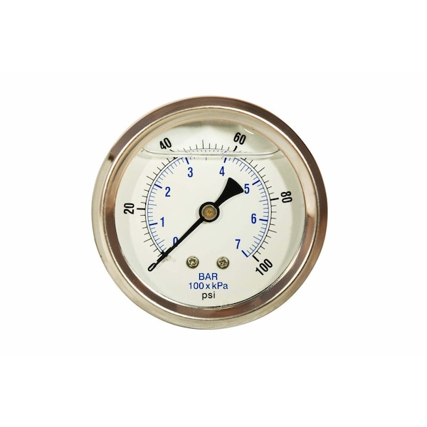 Glycerin Liquid Filled Pressure Gauge, 0-100 PSI