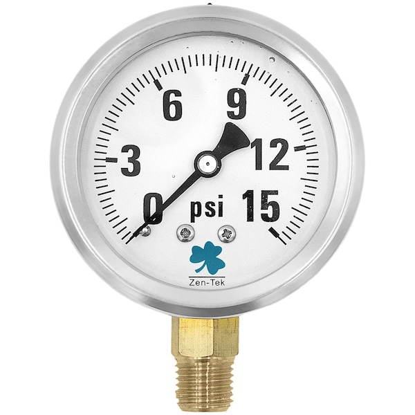 Glycerin Liquid Filled Pressure Gauge, 15 PSI