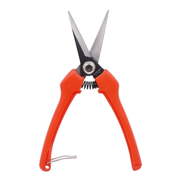 The Zenport H306C Euro Style Harvest Shear is an essential tool for gardeners, viticulturists, and horticulturists seeking precision and efficiency. Equipped with durable carbon-treated steel curved blades, this shear is specially designed for high-volume harvesting tasks, such as grape picking and pruning delicate fruit stems. The sharp, needle-nose blades enable deep, accurate cuts without harming surrounding fruits or foliage, making it ideal for maintaining plant health during harvest.With its spring-loaded mechanism, the H306C ensures smooth and effortless cutting by automatically reopening the blades after each snip, increasing productivity during long harvesting sessions. The locking mechanism secures the blades when not in use, ensuring safety and convenience. Designed for user comfort, the ergonomic, non-slip handles offer superior control, reducing hand fatigue even during extended use.Whether you're working in a vineyard, orchard, or home garden, the Zenport H306C Euro Style Harvest Shear is a versatile and reliable tool for harvesting fruits, flowers, and small branches. Its compact 7.5-inch size and 0.25-inch cut width provide the precision and maneuverability needed for a variety of tasks, making it an indispensable addition to your gardening toolkit.