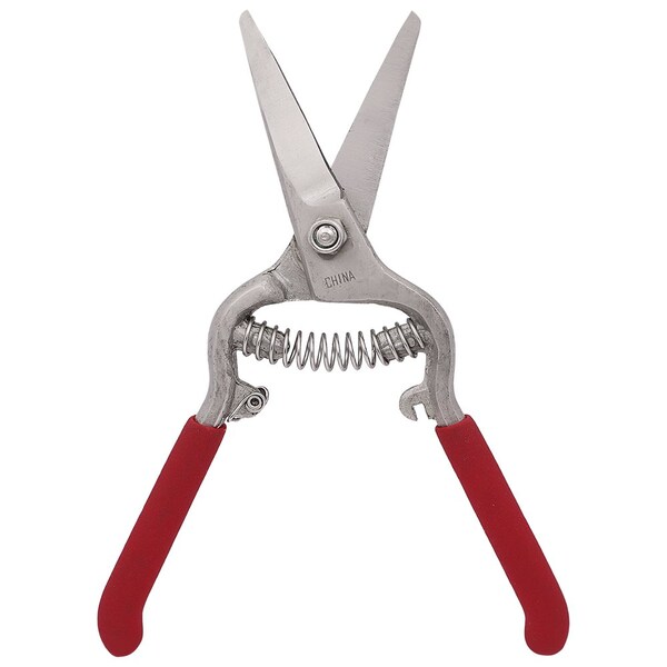 The Zenport Z280 Needlenose Shear is a versatile tool designed for efficient field harvest and thinning tasks. Its slightly curved, forged steel blades ensure clean, precise cuts on delicate stems and shoots, making it an ideal choice for grape and fruit harvesting. Built for durability, these shears can handle the rigors of repeated use while maintaining their sharpness, allowing for smooth and controlled cuts season after season. Perfectly suited for vineyard work, the Z280 is also great for trimming herbs, pruning ornamental plants, and thinning vegetables. The slim, needlenose design allows you to reach tight spaces and small branches without damaging surrounding growth. Whether youre a gardener, farmer, or home grower, these shears provide exceptional cutting control for both indoor and outdoor applications. Designed with comfort in mind, the red cushioned handles offer a secure, non-slip grip, reducing hand fatigue during extended use. The spring-loaded action gently reopens the blades after each cut, speeding up your workflow and reducing strain. Additionally, the built-in safety hook keeps the blades securely locked when not in use, ensuring safe storage.