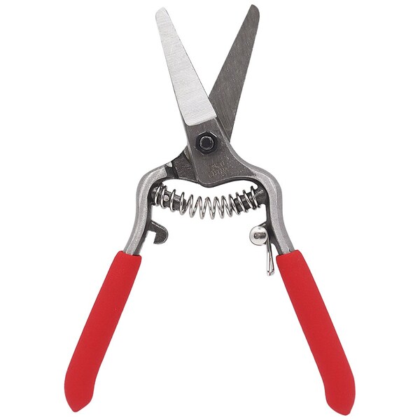 The Zenport Z270 Needle Nose Shear is a versatile and reliable tool designed for precision and ease in harvesting grapes, pruning delicate plants, and tackling various utility tasks. Crafted with drop-forged carbon steel blades, this shear delivers exceptional durability and sharpness, ensuring clean and accurate cuts every time. Whether you're working in vineyards, greenhouses, or home gardens, this tool is an essential addition to your collection.Comfort and safety are at the forefront of the Z270's design. The red cushioned handles provide an ergonomic grip, reducing hand fatigue during prolonged use, while the spring-loaded action automatically reopens the blades after each cut for smoother operation. When not in use, the safety hook locks the blades securely, offering convenient storage and added protection.Measuring 6 inches in overall length, the Zenport Z270 is compact yet powerful, making it ideal for navigating tight spaces and handling detailed tasks. Its lightweight design ensures ease of use without compromising performance, making it a favorite among professional gardeners and hobbyists alike.