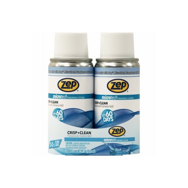 Zep, 2 Pack, 3 OZ, Crisp Clean Fragrance Refill, Fills Your Home, Office, Or Business With The Essence Of Freshness, Even In Large Rooms Or Areas Where Tough Odors Linger, Professional Air Freshener Refills Contain Concentrated Fragrance Oils Odor Counteractants, Each Can Contains 3,000 Sprays Lasts Up To 60 Days When Used On The Timemist Dispensers 30 Minute Setting