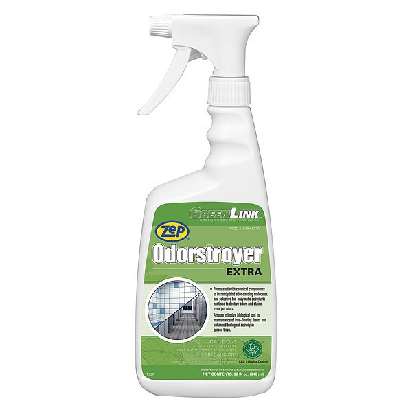 Biological Cleaner and Deodorizer, Cleaner Type Carpet Cleaner, Stain Remover, Container Type Trigger Spray Bottle, Container Size 32 oz, Cleaner Form Liquid, Ready to Use/Concentrated Ready to Use, pH Value Neutral, Fragrance Pleasant, Product Label Odorstroyer Extra, Standards VOC Compliant, Ecologo, Base Formula Water Based, Biodegradable No, Flash Point None, For Use With Carpet, Fabric, Laundry, Low Foaming Yes, Maximum Application Temperature 120 Degrees F, Maximum Coverage Area 100 sq ft