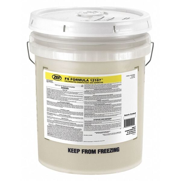 Disinfectant and Germicide, Primary Chemical None, Container Type Bucket, Container Size 5 gal, Ready to Use/Concentrated Concentrated, Recommended Dilution 1:8 to 1:51200, Fragrance Chlorine, Cleaner Form Liquid, Surfaces for Use On Hard Nonporous Surfaces, Standards EPA Registered, Wet Contact Time 2 to 10 min, Product Series FS Formula 12167, VOC Content 0 Percent, Flash Point None, Rinse Required No, NSF Rating Not Rated, EPA Registered Yes, EPA Registration Number 1270-20004