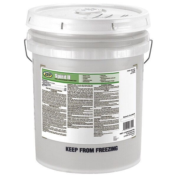 Disinfectant Cleaner, Primary Chemical None, Container Type Bucket, Container Size 5 gal, Ready to Use/Concentrated Ready to Use, Recommended Dilution Ready to Use, Fragrance Lemon, Cleaner Form Liquid, Surfaces for Use On Hard Non-Porous, Standards EPA Registered, Wet Contact Time 1 to 10 min, Targeted Pathogens Hepatitis B; HIV; Norovirus; Salmonella, Product Series Spirit II, VOC Content 0 Percent, Flash Point 200 Degrees F, Rinse Required Yes, NSF Rating Not Rated, EPA Registered Yes