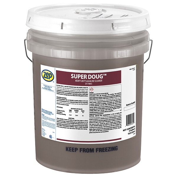 Heavy Duty Cleaner, All Purpose Cleaner, Surfaces for Use On Hard Nonporous Surfaces, Bucket, 5 gal, Fragrance Pungent, Ready to Use/Concentrated Ready to Use, Recommended Dilution Ready to Use, Primary Chemical None, Liquid, Standards UL Listed, Biodegradable Yes, Color Clear Amber, VOC Content 0 Percent, NSF Rating Not Rated, pH Level 13, pH Value Alkaline, Product Series Super Doug, Net Weight 5 gal, Properties Biodegradable