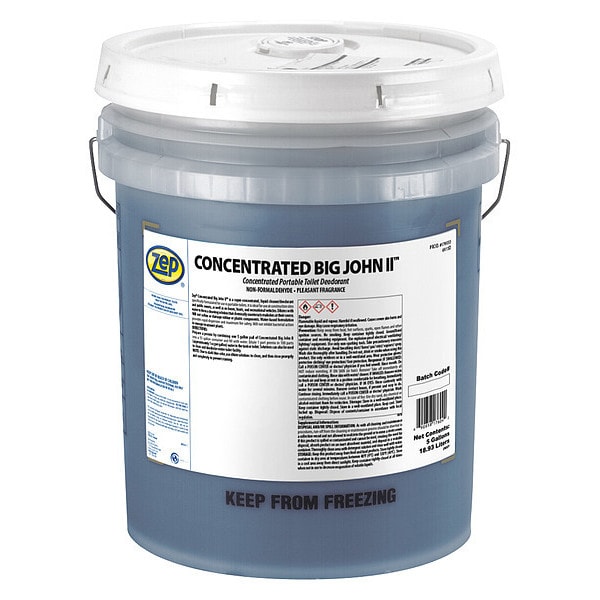 Odor Eliminator, Odor Eliminators, Fragrance Pleasant, Container Type Bucket, Container Size 5 gal, Recommended Dilution 1:11 to 1:100, Air Freshener Form Liquid, Blue, Air, Hard Nonporous Surfaces, None, Ready to Use/Concentrated Concentrated, Biodegradable Yes, Net Weight 42.8 lb, NSF Rating P1, Product Series Concentrated Big John II, VOC Content 0 Percent
