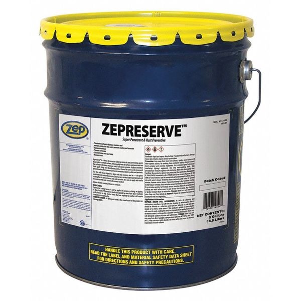 Penetrating Lubricant, Zep, Zep Preserve, Net Fill 5 gal, Container Size 5 gal, Drum, Mineral Oil, Min. Operating Temp. 0 Degrees F, Max. Operating Temp. 130 Degrees F, Not Rated NSF Rating, No 50 State VOC Compliant, 49.4 Percent VOC Content, Brown, Odorless Yes, Flammable, Flammable Liquid (Category 3), Flash Point 103 Degrees F, Not Applicable Military Standard, USDA Certified Biobased Product Not USDA Certified Biobased Product