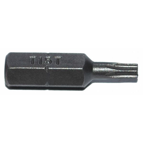 Insert Bit, Application - Tools Power, Bit Style Tamper Resistant Torx(R), Fastening Tool Tip Size TR15, Shank Style Hex, Hex Shank Size 1/4 in, Single End, Fastening Tool Material S2 Steel, Overall Bit Length 1 in, SAE, Finish Unfinished, Impact Rated Not Impact Rated, For Use With Power Tool, Insert Bit, Package Quantity 5