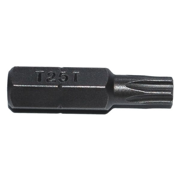 Insert Bit, Application - Tools Power, Bit Style Tamper Resistant Torx(R), Fastening Tool Tip Size TR25, Shank Style Hex, Hex Shank Size 1/4 in, Single End, Fastening Tool Material S2 Steel, Overall Bit Length 1 in, SAE, Finish Unfinished, Impact Rated Not Impact Rated, For Use With Power Tool, Insert Bit, Package Quantity 5