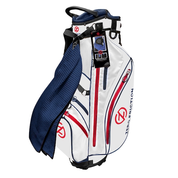 Our Extremely light weight, easy-carry, multi-functional bag comes with a complimentary matching 40” slotted waffle golf towel and our award-winning Performance glove, Weighs under 5 lbs., easy-carry dual strap, soft and durable handle, Comfortable hip pad, 7 zipper pockets for versatile storage: apparel compartment, lined valuables pocket and insulated water bottle pocket, Essential accessories holder: includes glove and towel holder, scorecard and pen holders and an umbrella holder, 6 way full length bottom of bag dividers to keep your clubs organized and prevent shafts from crossing.