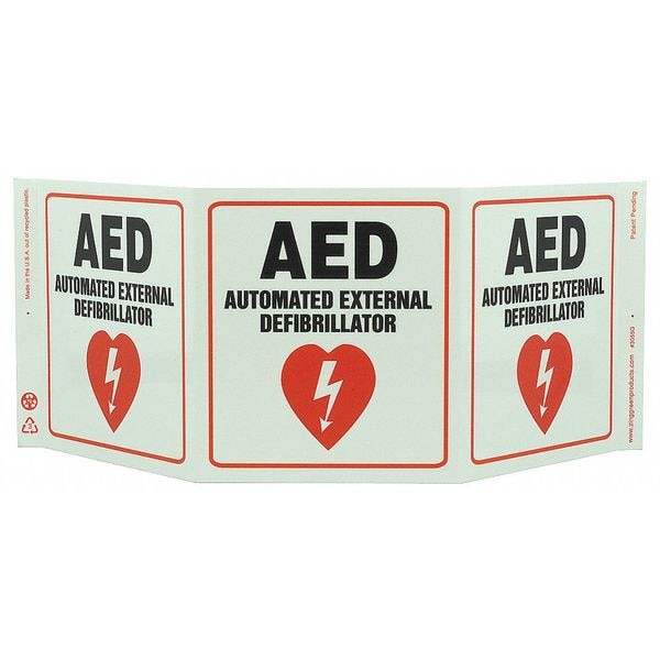 Caution Sign, Sign Subject Matter Medical and Hospital, Width 20 In., Sign Material Plastic, Header AED, Legend Automated External Defibrillator, Printed Language English
