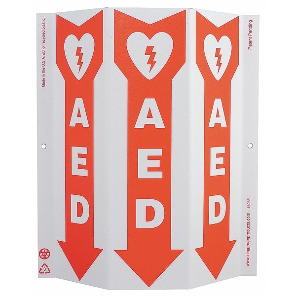 Aed Automated External Defibrillator, Plastic, 12" x 9", With Mounting Holes, 3-Sided