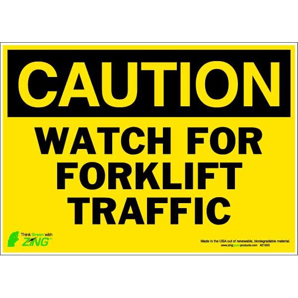 Caution Sign, Sign Subject Matter Lift Truck Traffic, Height 10 In., Width 14 In., Sign Material Polyester, Header Caution, Legend Watch For Forklift Traffic, Printed Language English, Sign Shape Rectangle