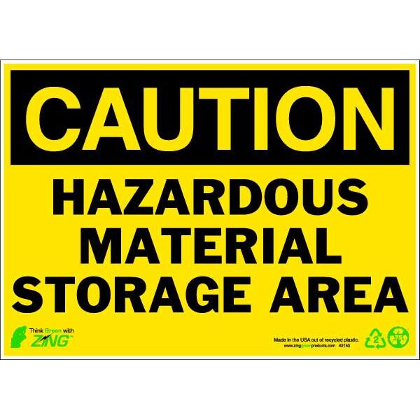 Caution Sign, Sign Subject Matter Chemical, Gas or Hazardous Materials, Height 10 in, Width 14 in, Sign Material Plastic, Header Caution, Legend Hazardous Material Storage Area, Printed Language English, Sign Shape Rectangle
