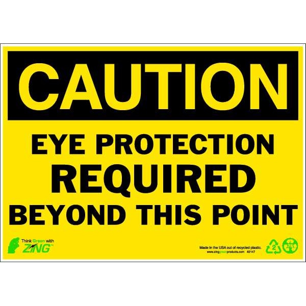 Caution Sign, Sign Subject Matter Personal Protection, Height 10 in, Width 14 in, Sign Material Plastic, Header Caution, Legend Eye Protection Required Beyond This Point, Printed Language English, Sign Shape Rectangle
