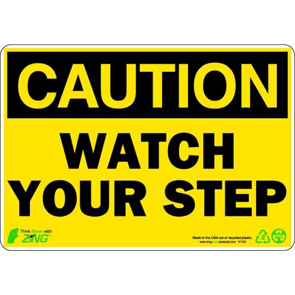 Caution Sign, Sign Subject Matter Accident Prevention, Height 7 In., Width 10 In., Sign Material Plastic, Header Caution, Legend Watch Your Step, Printed Language English, Sign Shape Rectangle