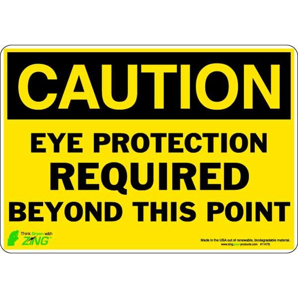 Caution Sign, Sign Subject Matter Personal Protection, Height 7 in, Width 10 in, Sign Material Polyester, Header Caution, Legend Eye Protection Required Beyond This Point, Printed Language English, Sign Shape Rectangle