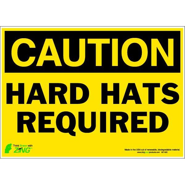 CAUTION Sign, Hard Hat Required, 10X14", Thickness: 0.025"