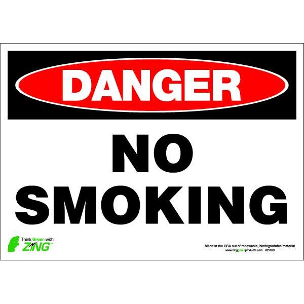 Danger No Smoking Sign, 10" H, 14 in W, Polyester, Rectangle, English, 2109S