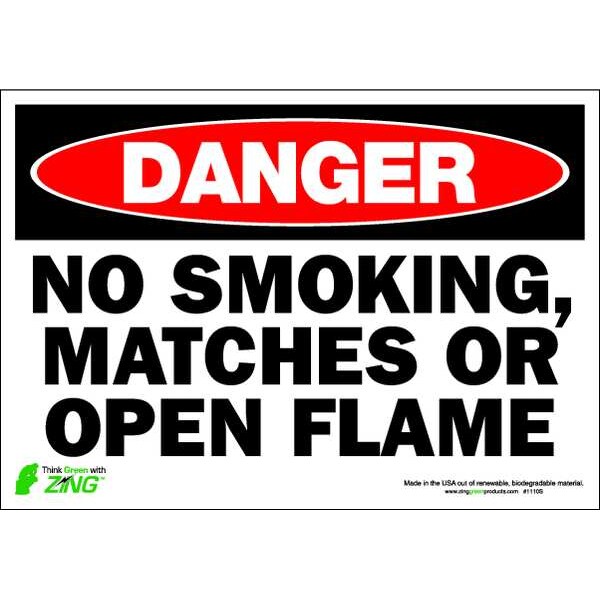 Danger No Smoking Sign, Sign Subject Matter No Smoking, Height 7 in, Width 10 in, Sign Material Polyester, Sign Mounting Style Adhesive Surface, Header DANGER, Legend No Smoking, Matches Or Open Flame, Printed Language English, Sign Shape Rectangle