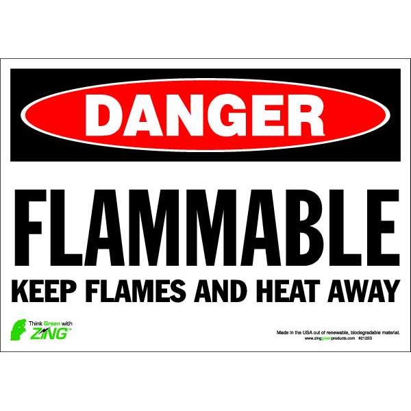 Danger Sign, Sign Subject Matter Chemical, Gas or Hazardous Materials, Height 10 in, Width 14 in, Sign Material Polyester, Sign Mounting Style Adhesive Surface, Header Danger, Legend Flammable Keep Flames And Heat Away, Printed Language English, Sign Shape Rectangle