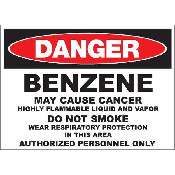 Danger Sign, Sign Subject Matter Chemical, Gas or Hazardous Materials, Height 10 in, Width 14 in, Sign Material Polyester, Sign Mounting Style Surface, Header Danger, Legend Benzene, Printed Language English, Sign Shape Rectangle
