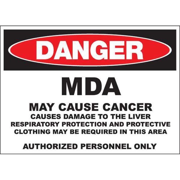 Danger Sign, Sign Subject Matter Chemical, Gas or Hazardous Materials, Height 10 in, Width 14 in, Sign Material Polyester, Sign Mounting Style Surface, Header Danger, Legend MDA, Printed Language English, Sign Shape Rectangle