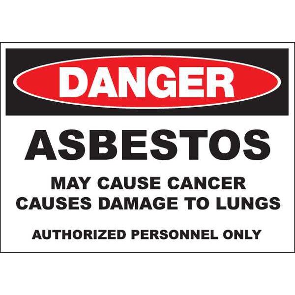 Danger Sign, Sign Subject Matter Health Hazard, Height 10 in, Width 14 in, Sign Material Aluminum, Sign Mounting Style Surface, Header Danger, Legend Asbestos, Printed Language English, Sign Shape Rectangle
