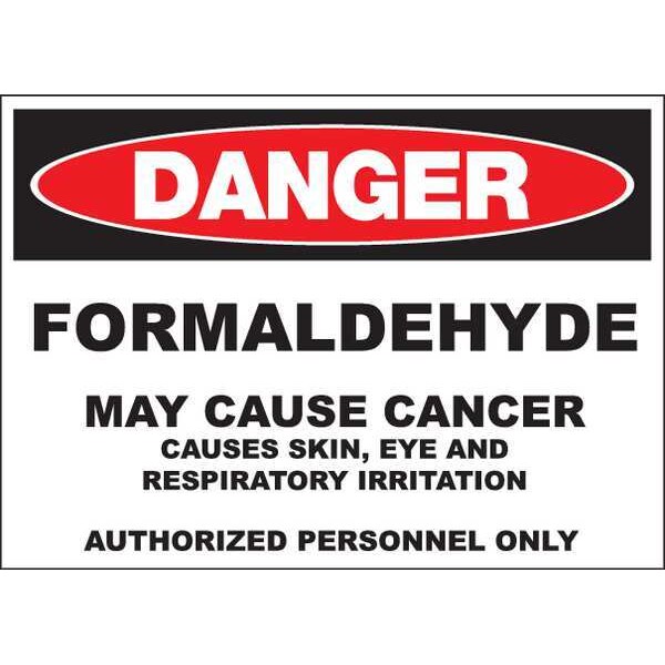 Danger Sign, Sign Subject Matter Chemical, Gas or Hazardous Materials, Height 10 in, Width 14 in, Sign Material Aluminum, Sign Mounting Style Surface, Header Danger, Legend Formaldehyde, Printed Language English, Sign Shape Rectangle