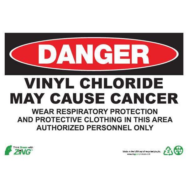 Danger Sign, Sign Subject Matter Health Hazard, Height 10 in, Width 14 in, Sign Material Aluminum, Sign Mounting Style Surface, Header Danger, Legend Vinyl Chloride May Cause Cancer, Printed Language English, Sign Shape Rectangle