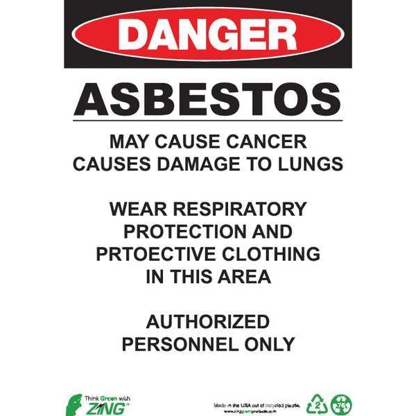Danger Sign, Sign Subject Matter Health Hazard, Height 10 in, Width 14 in, Sign Material Aluminum, Sign Mounting Style Surface, Header Danger, Legend Asbestos May Cause Cancer Causes Damage To Lungs, Printed Language English, Sign Shape Rectangle