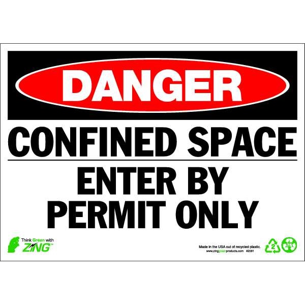 Danger Sign, Sign Subject Matter Confined Space, Height 10 in, Width 14 in, Sign Material Plastic, Sign Mounting Style Surface, Header Danger, Legend Confined Space Enter By Permit Only, Printed Language English, Sign Shape Rectangle
