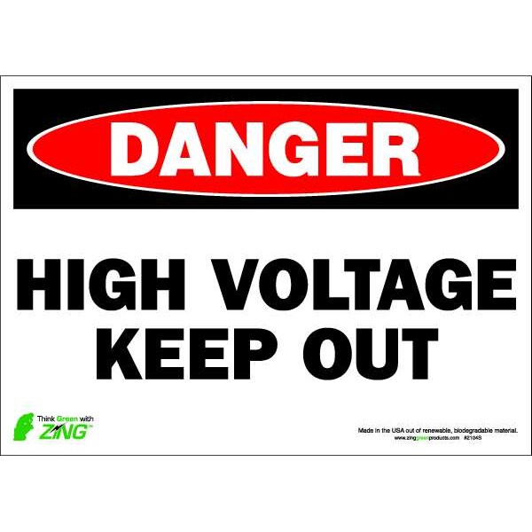 Danger Sign, Sign Subject Matter Electrical Hazard, Height 10 in, Width 14 in, Sign Material Polyester, Sign Mounting Style Adhesive Surface, Header Danger, Legend High Voltage Keep Out, Printed Language English, Sign Shape Rectangle