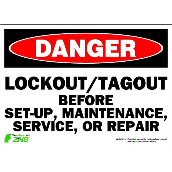 Danger Sign, Sign Subject Matter Lockout Tagout, Height 10 in, Width 14 in, Sign Material Polyester, Sign Mounting Style Adhesive Surface, Header Danger, Legend Lockout/Tagout Before Set-Up, Maintenance, Service, Or Repair, Printed Language English, Sign Shape Rectangle