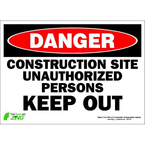 Danger Sign, Sign Subject Matter Construction, Height 10 in, Width 14 in, Sign Material Polyester, Sign Mounting Style Adhesive Surface, Header Danger, Legend Construction Site Unauthorized Persons Keep Out, Printed Language English, Sign Shape Rectangle