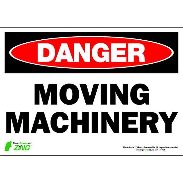 Danger Sign, Sign Subject Matter Machine and Operational, Height 7 In., Width 10 In., Sign Material Polyester, Sign Mounting Style Adhesive Surface, Header Danger, Legend Moving Machinery, Printed Language English, Sign Shape Rectangle