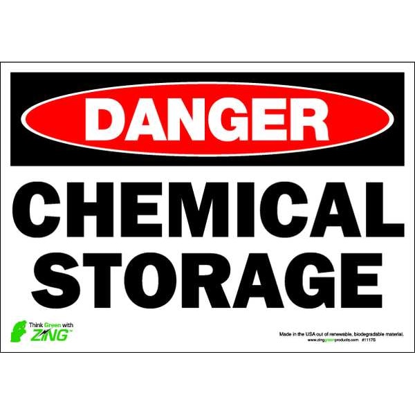 Danger Sign, Rectangle, English, Sign Legend Chemical Storage