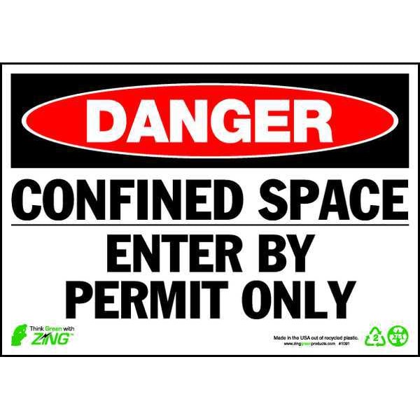 Danger Sign, 7 in H x 10 in W, Plastic, Rectangle, Confined Space Enter By Permit Only