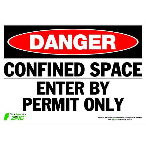 Danger Sign, Sign Subject Matter Confined Space, Height 7 in, Width 10 in, Sign Material Polyester, Sign Mounting Style Adhesive Surface, Header Danger, Legend Confined Space Enter By Permit Only, Printed Language English, Sign Shape Rectangle