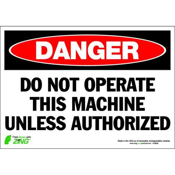 Danger Sign, Sign Subject Matter Authorized Personnel and Restricted Access, Height 7 in, Width 10 in, Sign Material Polyester, Sign Mounting Style Adhesive Surface, Header Danger, Legend Do Not Operate This Machine Unless Authorized, Printed Language English, Sign Shape Rectangle
