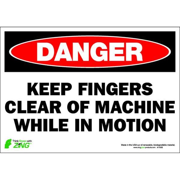 Danger Sign, Sign Subject Matter Keep Hands Clear, Height 7 in, Width 10 in, Sign Material Polyester, Sign Mounting Style Adhesive Surface, Header Danger, Legend Keep Fingers Clear Of Machine While In Motion, Printed Language English, Sign Shape Rectangle