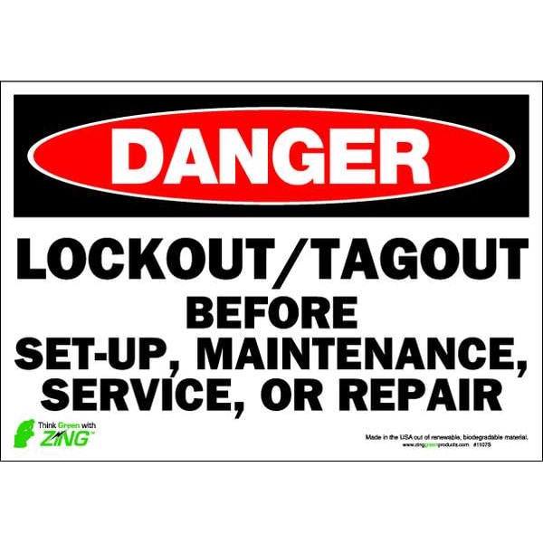 Danger Sign, Sign Subject Matter Lockout Tagout, Height 7 in, Width 10 in, Sign Material Polyester, Sign Mounting Style Adhesive Surface, Header Danger, Legend Lockout/Tagout Before Set-Up, Maintenance, Service, Or Repair, Printed Language English, Sign Shape Rectangle