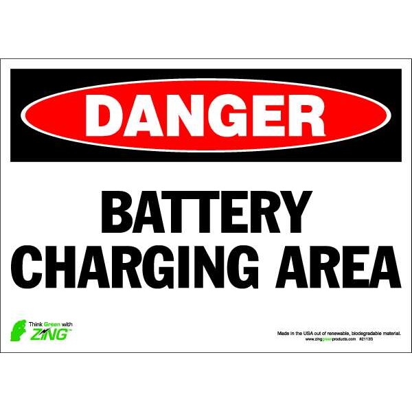 DANGER Sign, Battery Charging Area, ADH, Width: 14"