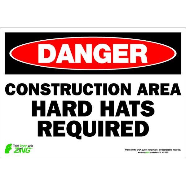 Danger Sign, Sign Subject Matter Personal Protection, Height 7 in, Width 10 in, Sign Material Polyester, Sign Mounting Style Adhesive Surface, Header Danger, Legend Construction Area Hard Hats Required, Printed Language English, Sign Shape Rectangle