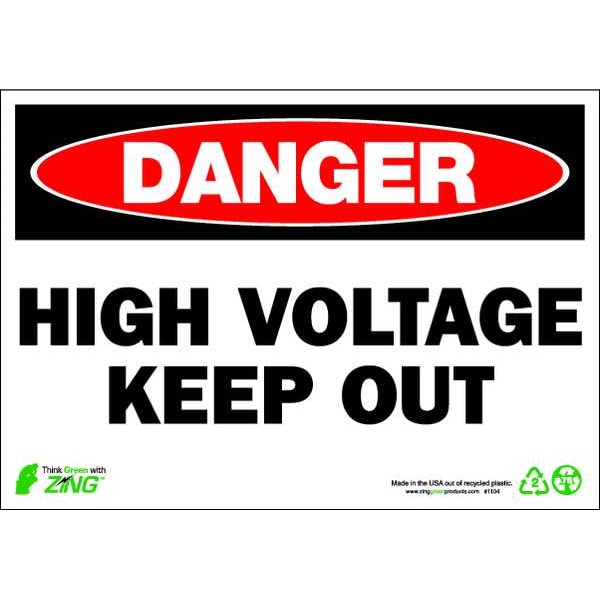 Danger Sign, Sign Subject Matter Electrical Hazard, Height 7 in, Width 10 in, Sign Material Plastic, Sign Mounting Style Surface, Header Danger, Legend High Voltage Keep Out, Printed Language English, Sign Shape Rectangle