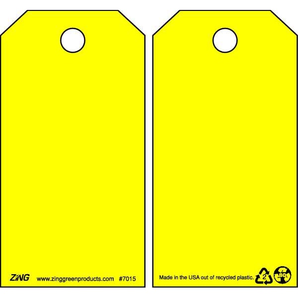 Danger Tag, Blank, Plastic, 5 3/4 in H x 3 in W, Yellow, Rectangle, 10 PK