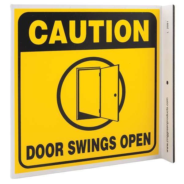 Caution Sign, Sign Subject Matter Door Instruction, Height 7 in, Width 7 in, Sign Material Plastic, Header Caution, Legend Door Swings Open, Printed Language English, Sign Shape L-Shaped