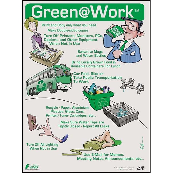 Environmental Awareness Poster, Green at Work, 22 in H x, 16 in W, Plastic
