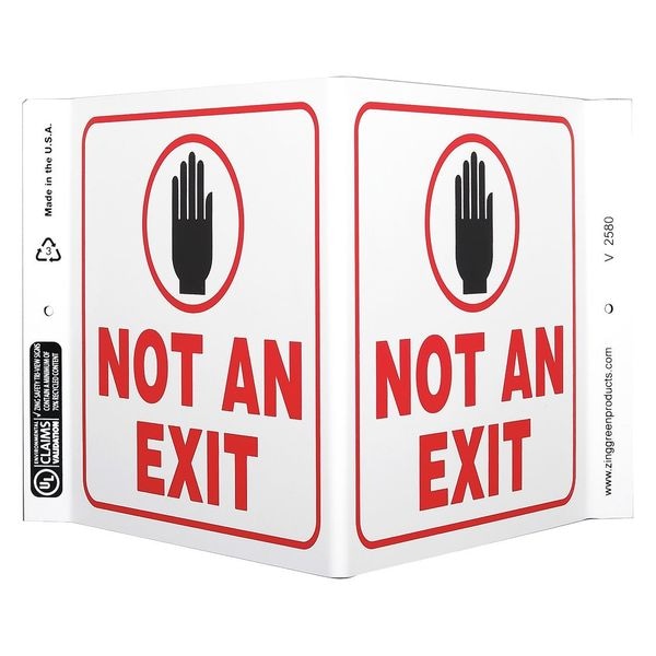 Exit Sign, Sign Subject Matter Exit and Entrance, Height 7 In., Width 12 In., Sign Material Plastic, Sign Mounting Style With Mounting Holes, V-Shaped, Legend Not An Exit (Picto), Printed Language English, Sign Shape V-Shaped